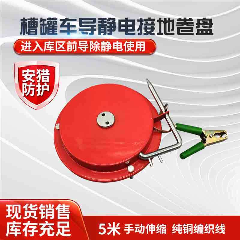 槽罐車靜電接地卷盤手動5米純銅編織線靜電拖地線卷盤鋼絲線卷盤