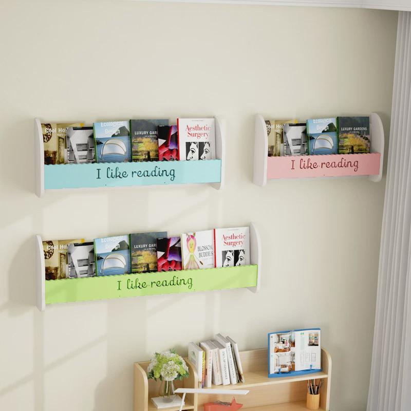 6R兒童墻上壁掛書架免打孔繪本架床頭掛墻置物架寶寶臥室收納擱板