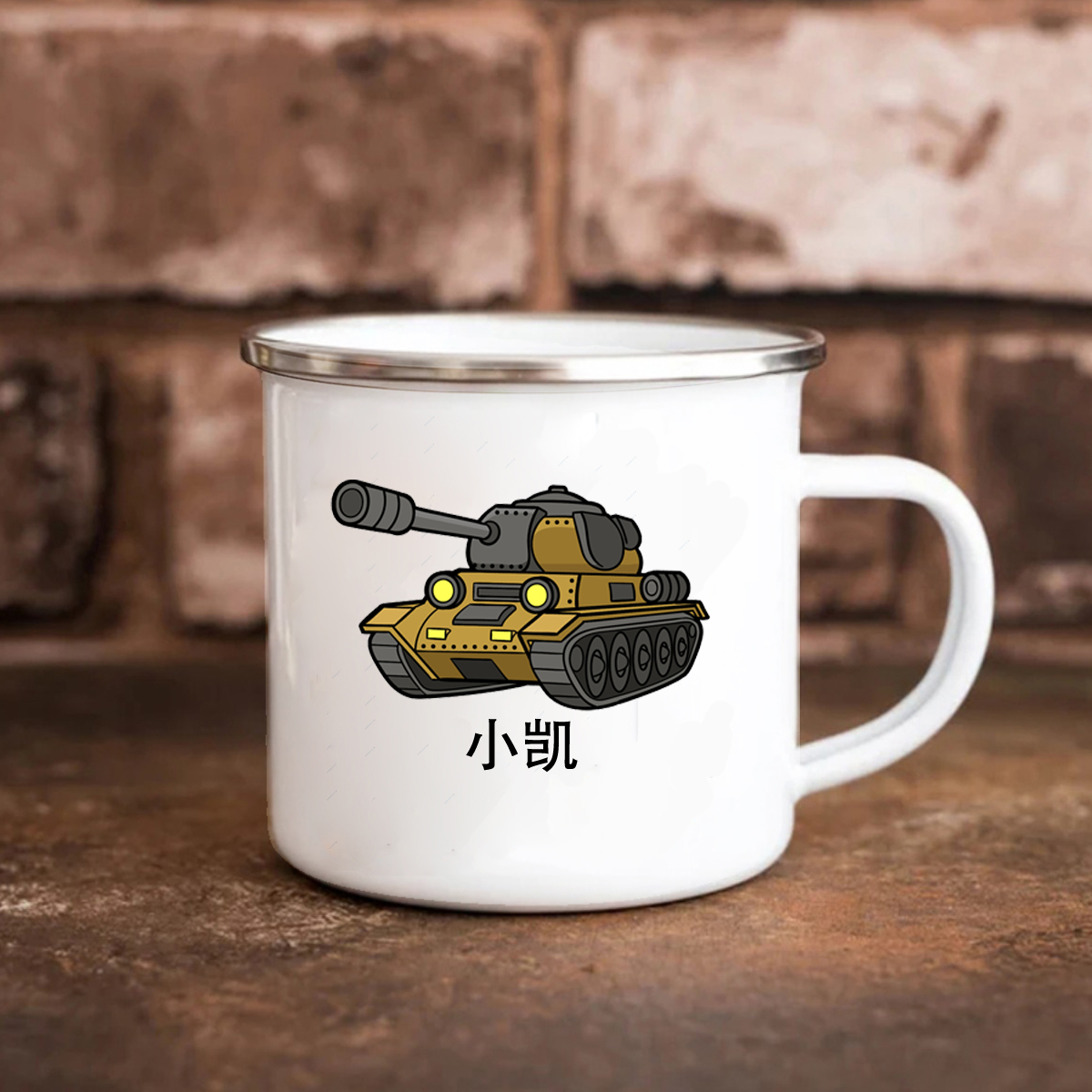 坦克車系列 兒童搪瓷馬克杯 男孩喝奶杯子 訂制名字幼兒園喝水杯