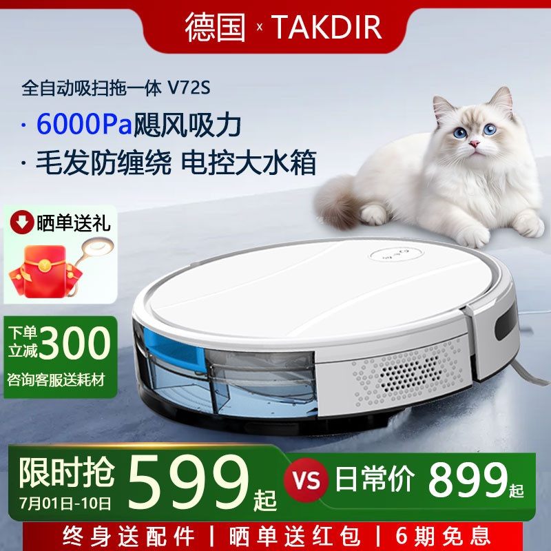 德國TAKDIR掃地機器人吸掃拖一體大吸力智能APP超薄三檔電控水箱
