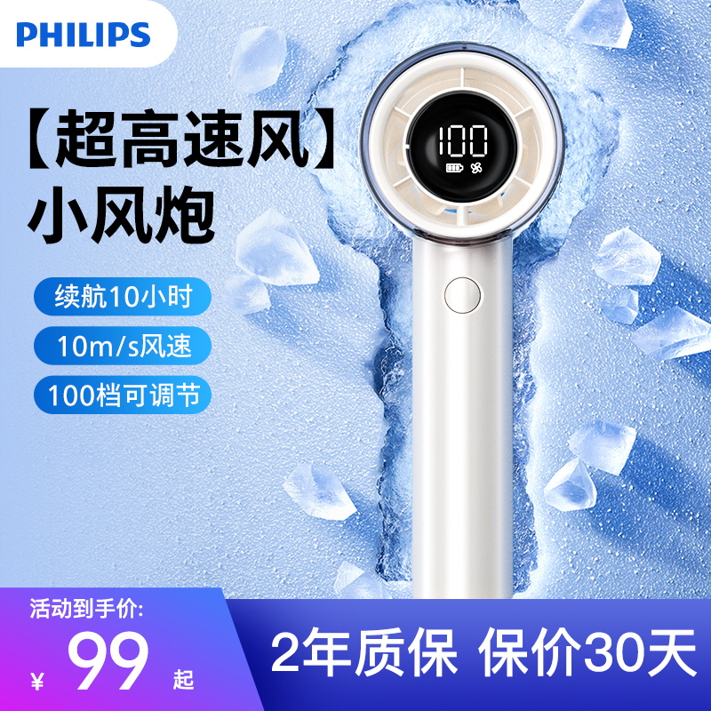 飛利浦手持小風扇便攜式迷你無葉渦輪充電輕音手拿桌面續航電風扇