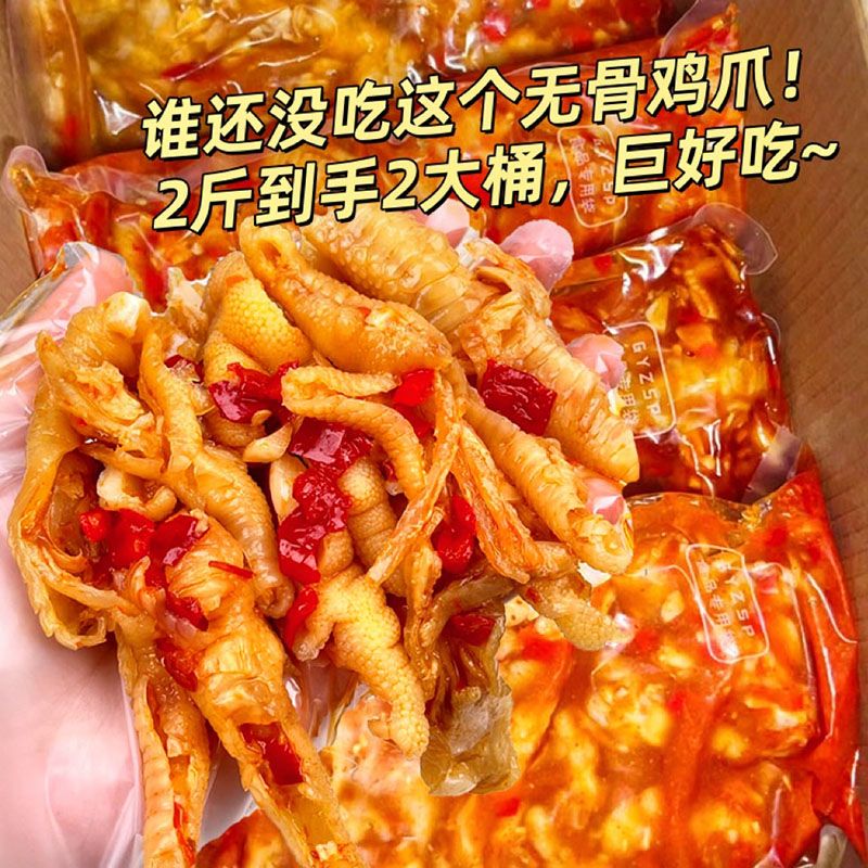酸辣無骨雞爪脫骨即食罐裝網紅去骨鳳爪袋裝500g桶裝甜辣零食