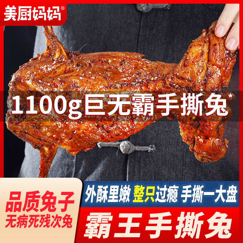 麻辣手撕兔四川手撕烤兔香辣兔肉兔腿兔頭冷吃兔美廚媽媽成都特產