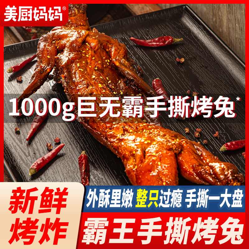 手撕烤兔四川香辣手撕兔麻辣兔肉兔腿兔頭冷吃兔美廚媽媽成都特產
