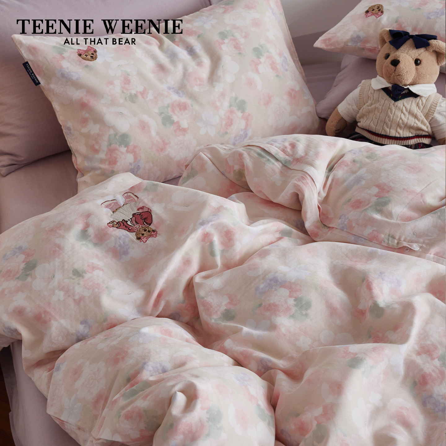 TeenieWeenie小熊刺繡全棉雙層紗床上用品四件套純棉床單床笠款