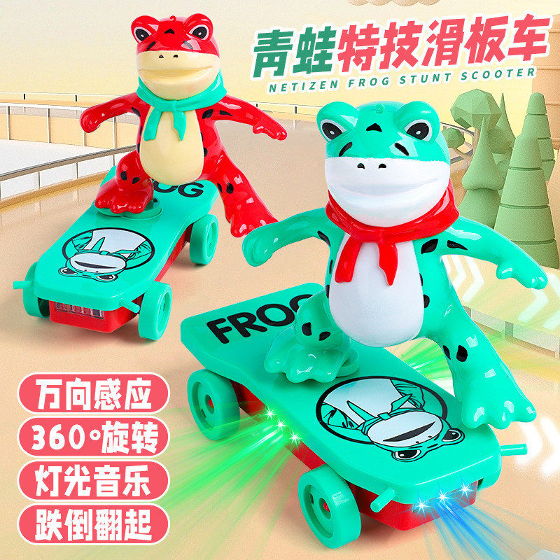 網紅抖音萬向電動青蛙滑板車燈光音樂特技兒童寶寶玩具1-3歲
