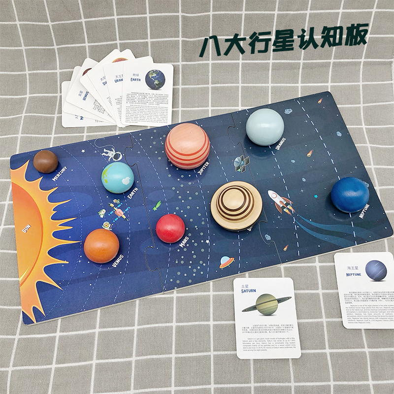 幼兒園小學早教科學探索玩具太陽系九大行星認知配對拼圖星球模型