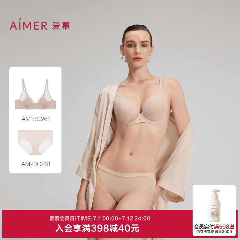 愛慕25夏新品織錦花瓣內衣女3/4薄襯墊大胸顯小文胸內褲套裝
