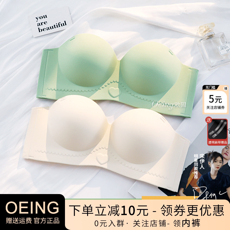 OEING無肩帶內衣小胸不掉聚攏顯大上托防下垂夏季白色舒適文胸女