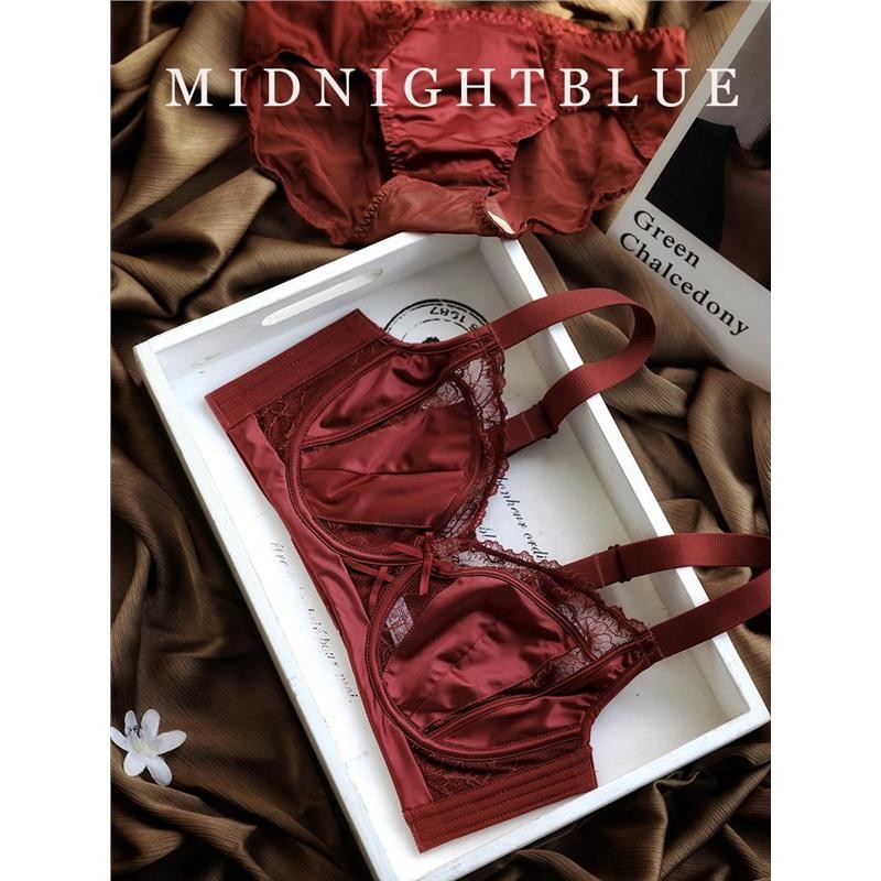 愛慕正品花瓣內衣女士紅色本命年新婚薄款無鋼圈聚攏文胸內褲套裝