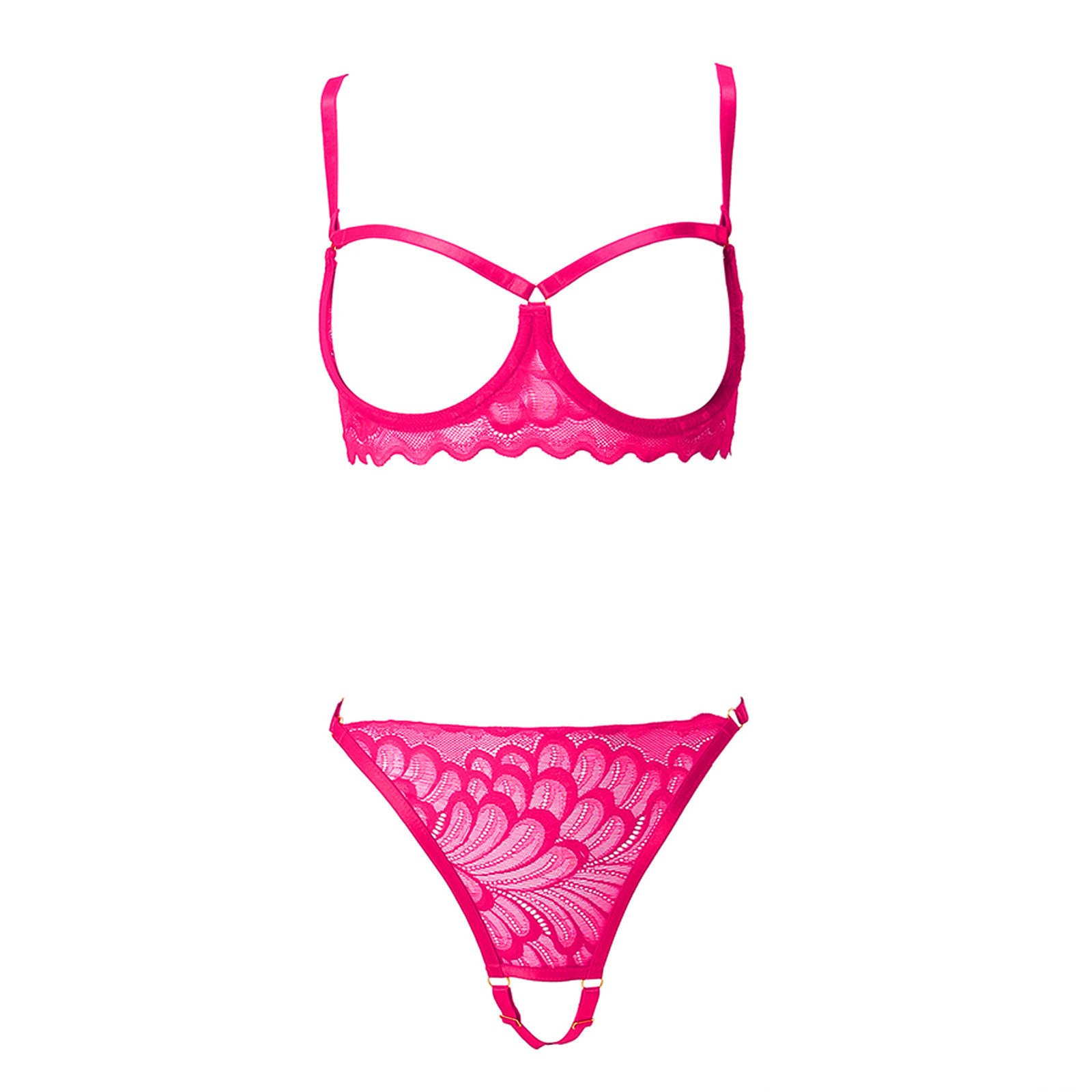 幸己-夢中胭色-贈絲襪腰封有鋼圈蕾絲聚攏文胸T褲吊襪帶新年套裝
