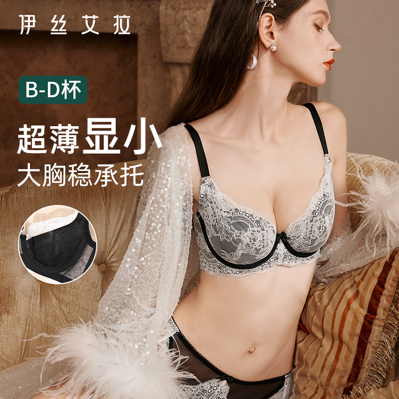 伊絲艾拉大胸顯小胸內衣套裝女士夏季薄款性感蕾絲聚攏防下垂文胸