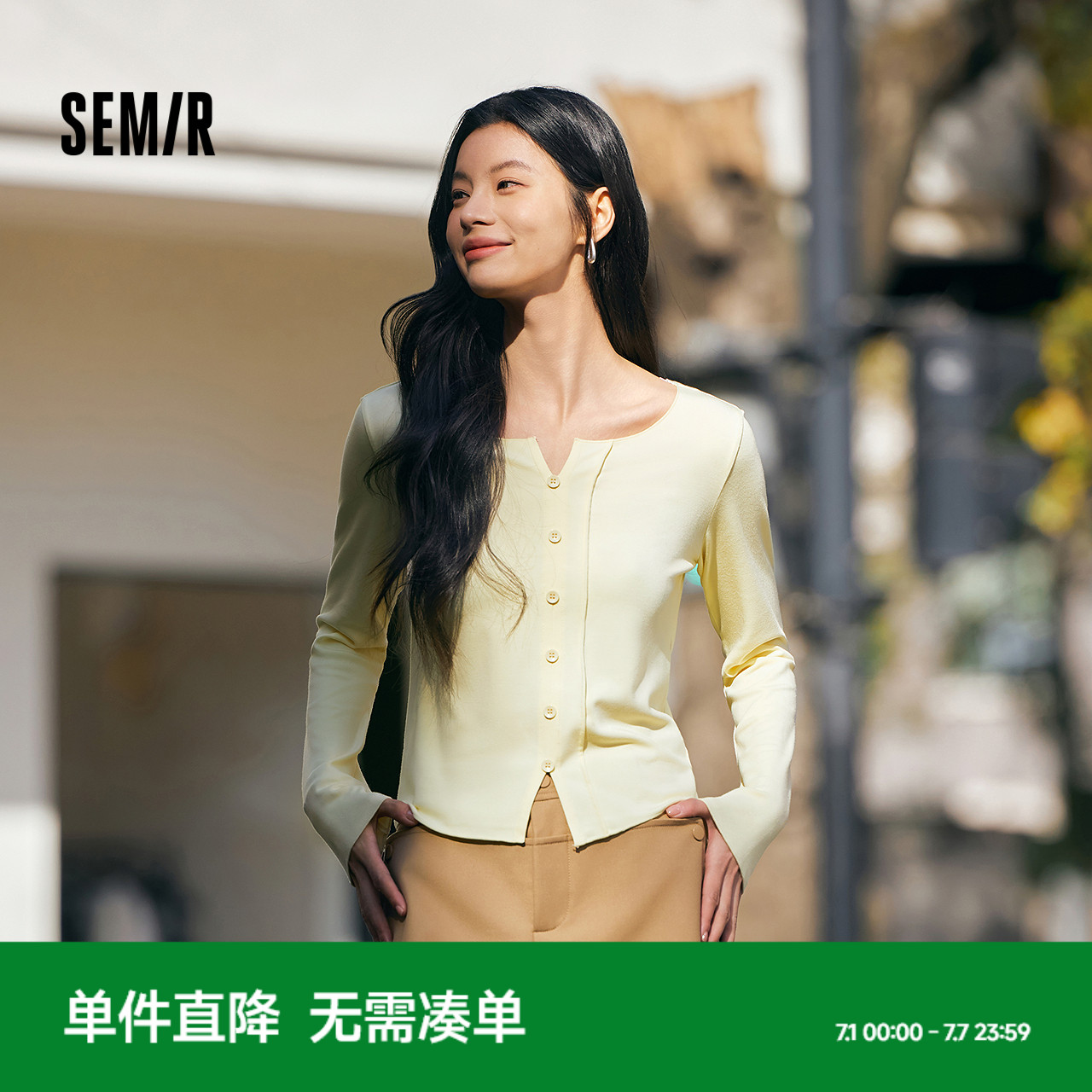 森馬打底衫女修身顯瘦內搭純色百搭春時尚開叉上衣可外穿休閑圓領