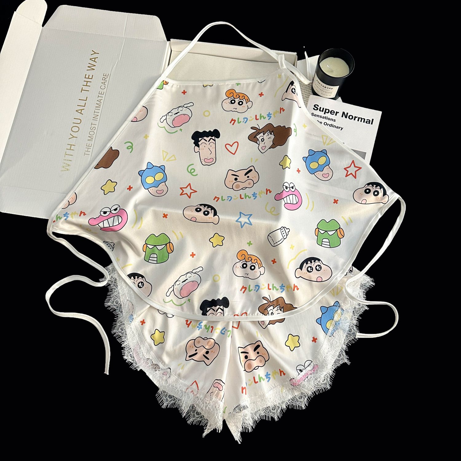 蠟筆小新肚兜睡衣套裝蕾絲花邊可愛搞怪家居服夏季性感女士家居服