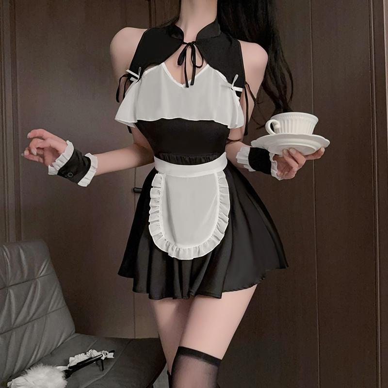 現貨睡衣女性感誘惑內衣趣味制服cos純欲蕾絲女仆套裝情調黑絲女