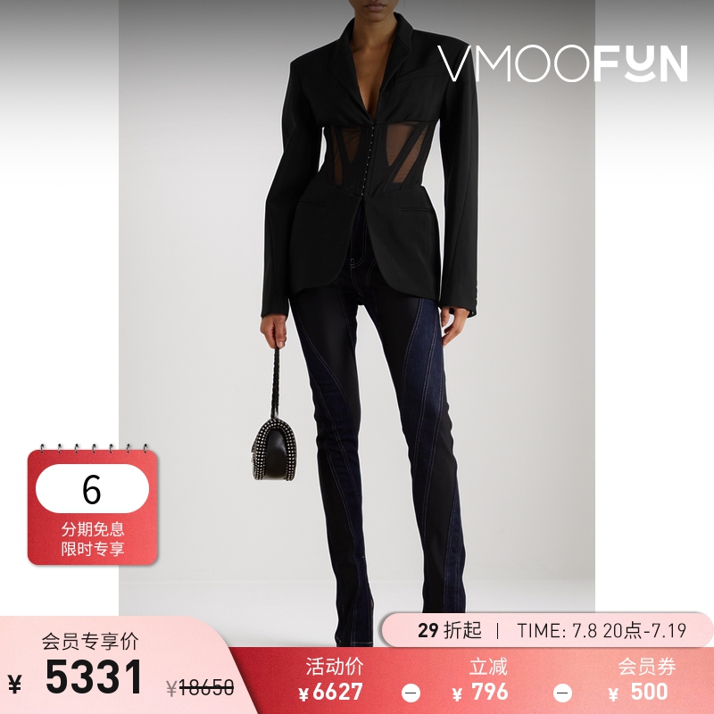 【折扣】Mugler女拼縫透視絹網邊飾斜紋布西裝外套