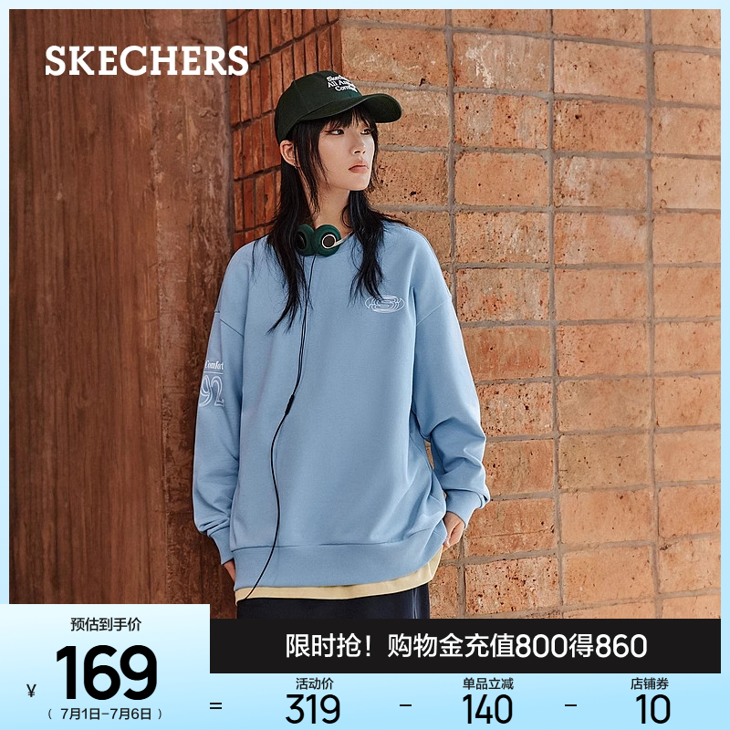 Skechers斯凱奇春季男女同款衛衣寬松運動休閑服輕質柔軟長袖T恤