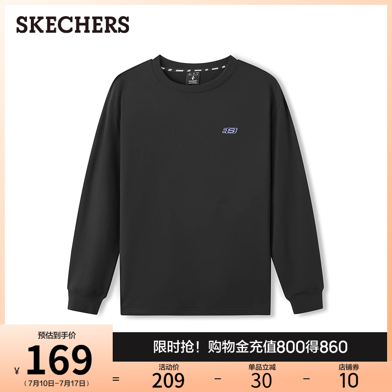 斯凱奇2025年夏季新款寬松字母印花男女同款圓領柔軟舒適長袖T恤