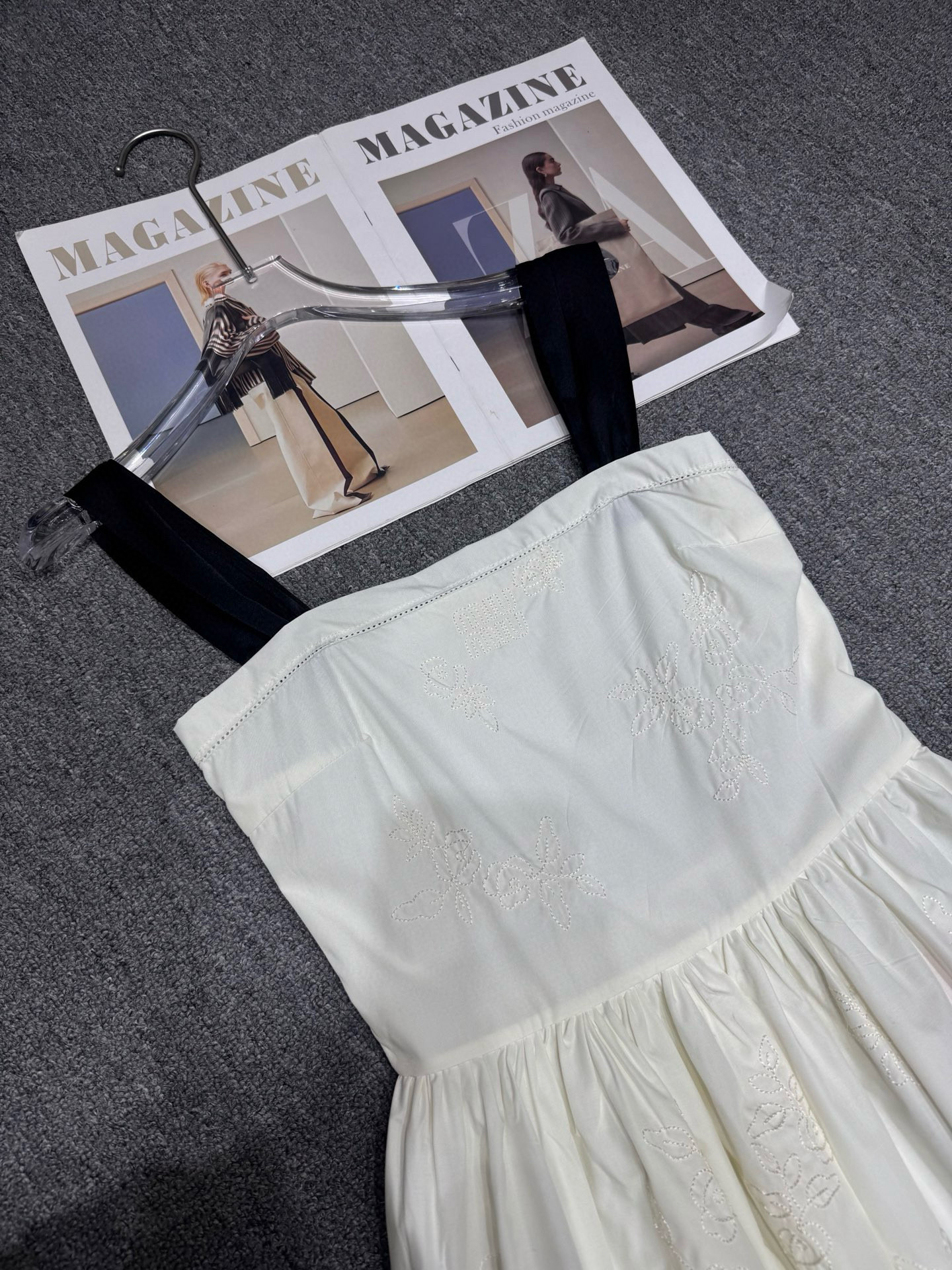 25夏季新款法式千金風字母提花刺繡背帶連衣裙女氣質收腰顯瘦裙子