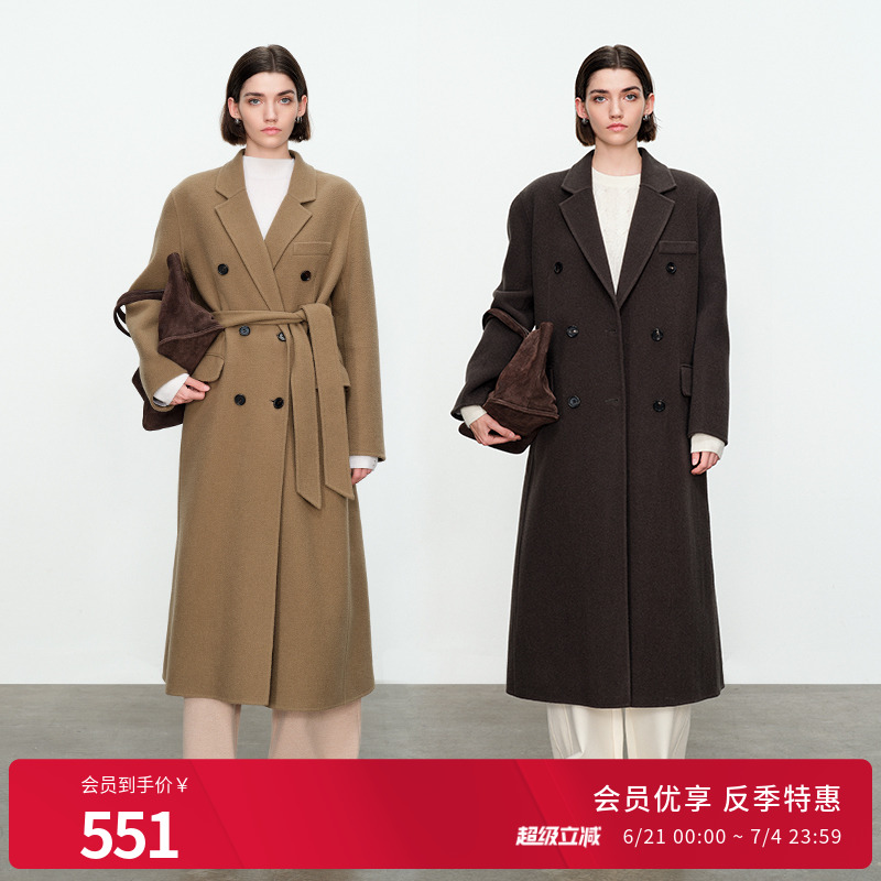 婉甸2024冬季新品生皮色立絨全澳毛雙面尼長牛角大衣MBC4C01SJX