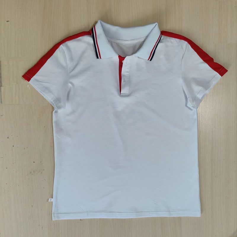 夏POLO衫白色中小學生校服短袖T恤上衣袖拼大紅寬杠白領學生班服