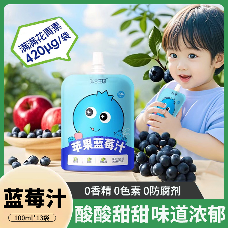光合王國蘋果藍莓汁兒童花青素果汁0添加金銀花柚子汁果蔬汁飲料