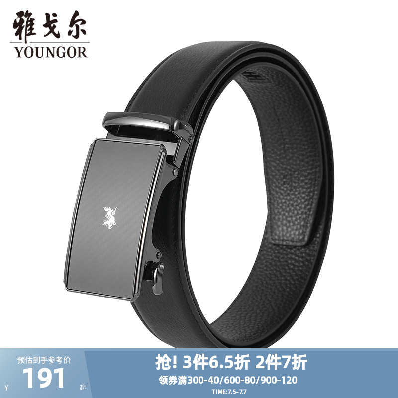 雅戈爾男士腰帶春季新款官方商務休閑自動扣牛皮腰帶男