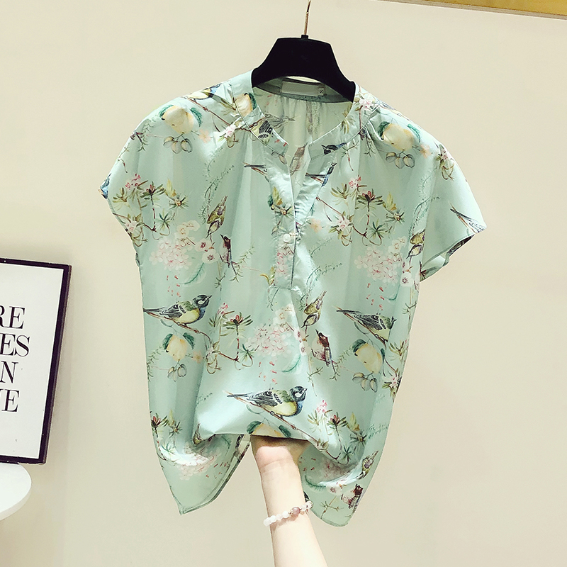 小清新上衣2025夏季新款法式碎花V領女士襯衫ins復古薄款短袖襯衣
