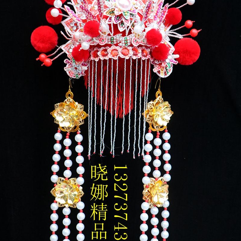 速發京劇 戲曲 絨球鳳冠 新娘頭飾 鳳冠霞帔 中式婚禮 影樓攝影婚