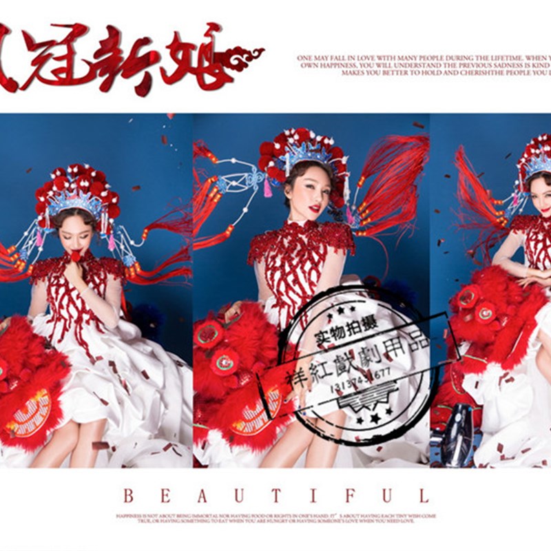 極速京劇 戲曲 絨球鳳冠 新娘頭飾 鳳冠霞L帔 中式婚禮 影樓攝影