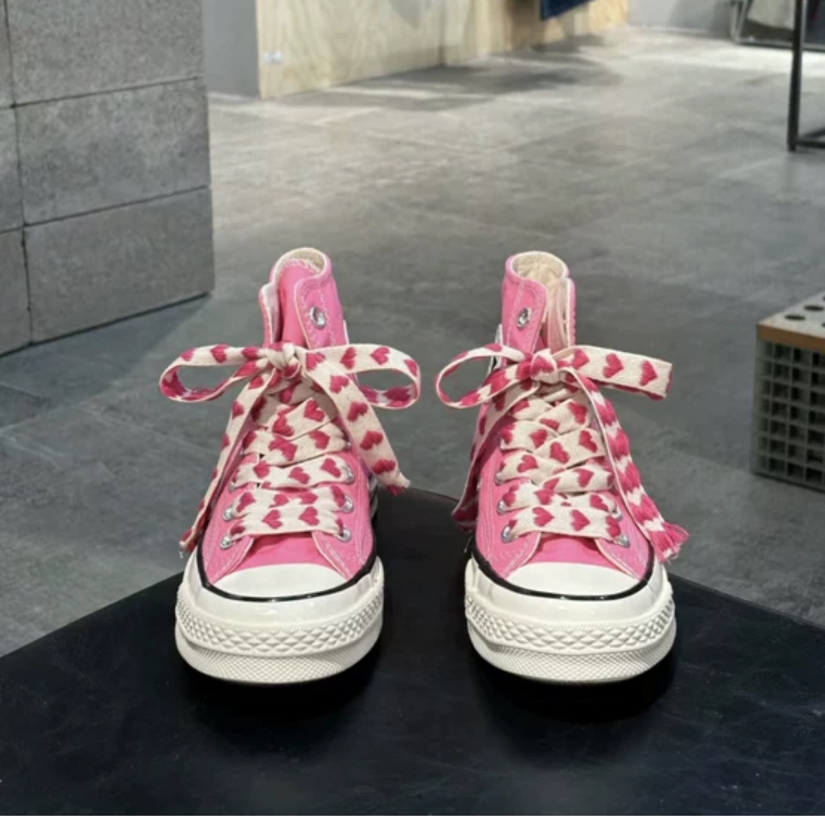 適配converse匡威1970s芭比粉帆布鞋帆布鞋情人節愛心圖案diy鞋帶