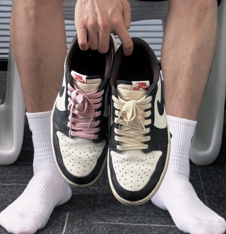 適配耐克aj1 low摩卡復古低幫板鞋做舊氧化倒鉤粉鞋帶籃球鞋繩子