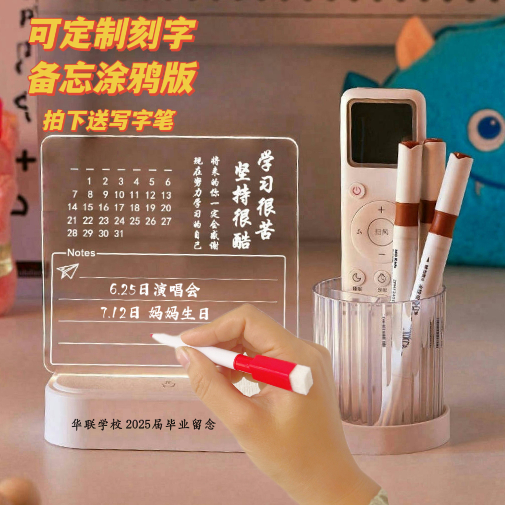 定制刻字筆筒小夜燈勵志擺件學生考試獎品留言記事涂鴉板畢業禮品