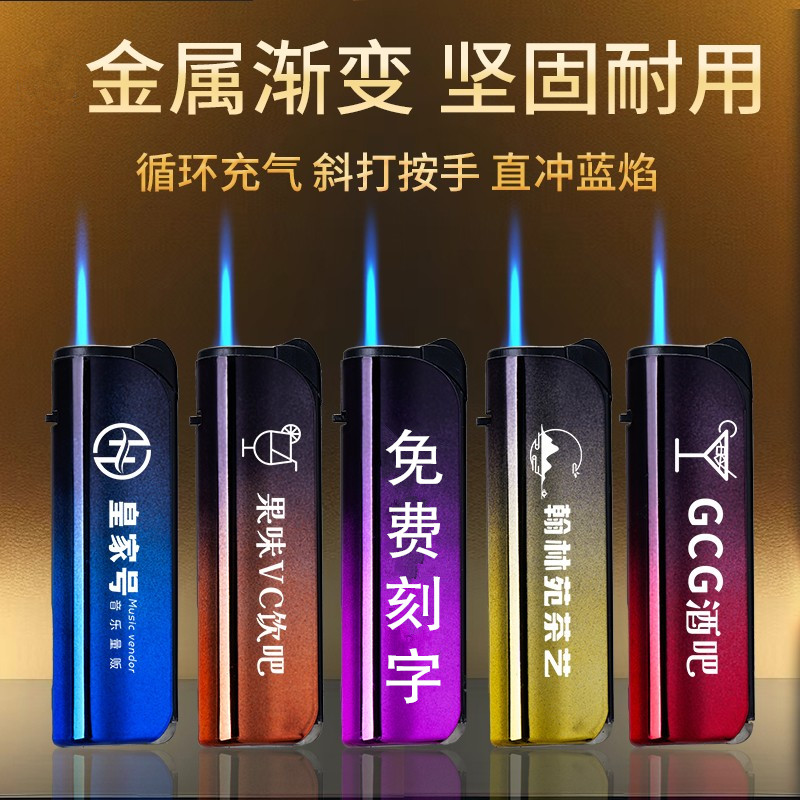 新款莫蘭迪色耐用金屬直沖防風打火機雙層充氣加厚印字刻字防爆