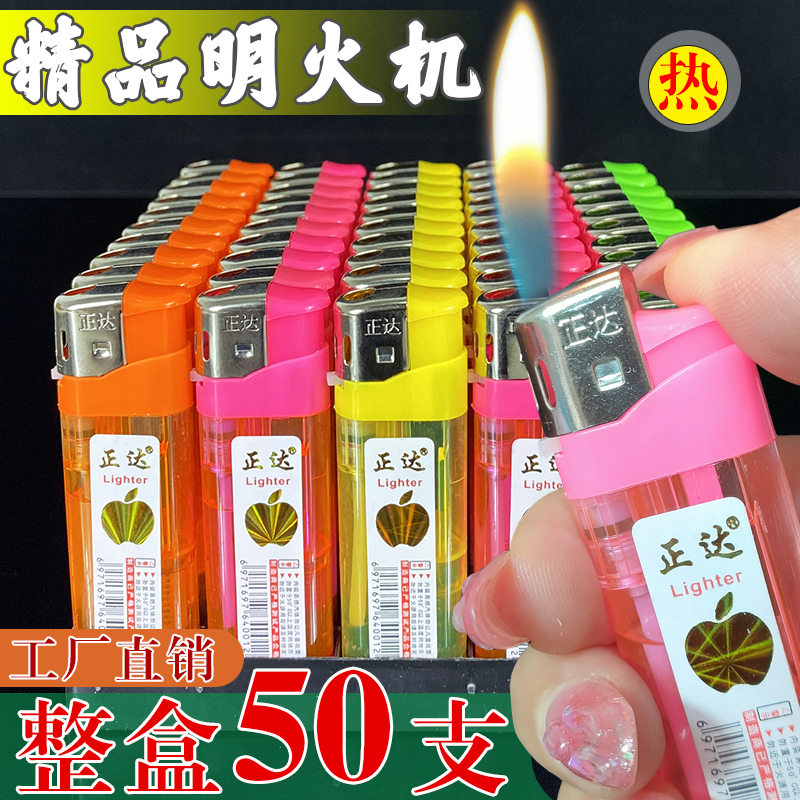 寬版50支一次性加厚防爆明火打火機超市便利店電子點火普通家用