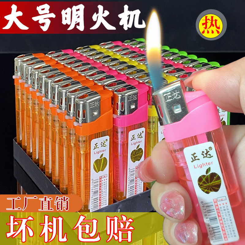 正達品牌寬版大號五色明火打火機半包中華一次性打火機電子點火