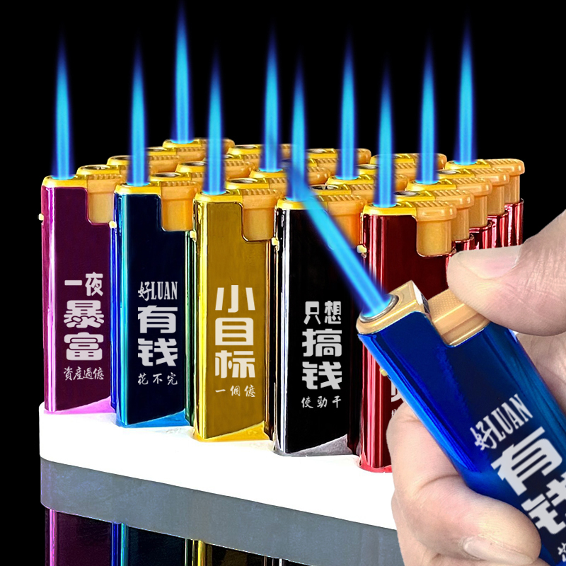 百誠正品防風充氣打火機藍焰直沖創意可視氣窗個性潮流高檔送男友