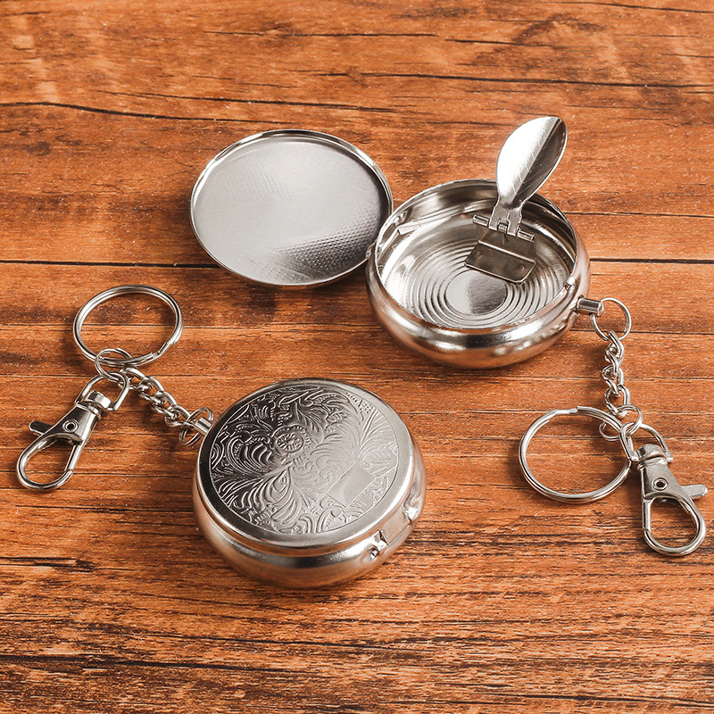 創意迷你便攜式 小煙缸 鑰匙扣彈蓋煙缸 金屬材質 外出用品