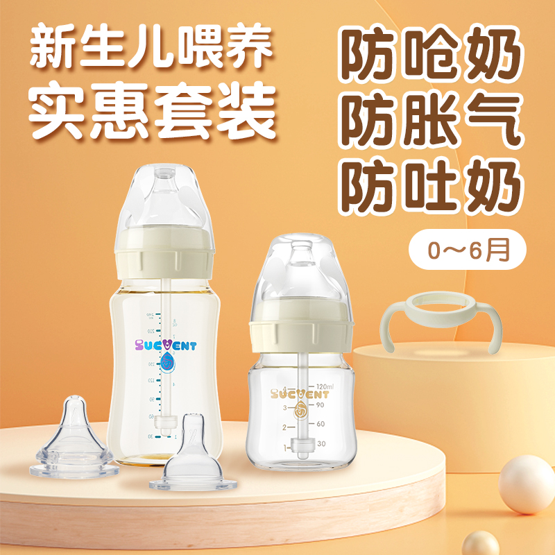 舒嬰奶瓶新生兒喂養實惠套裝防脹氣防嗆奶防吐奶0-6月適用