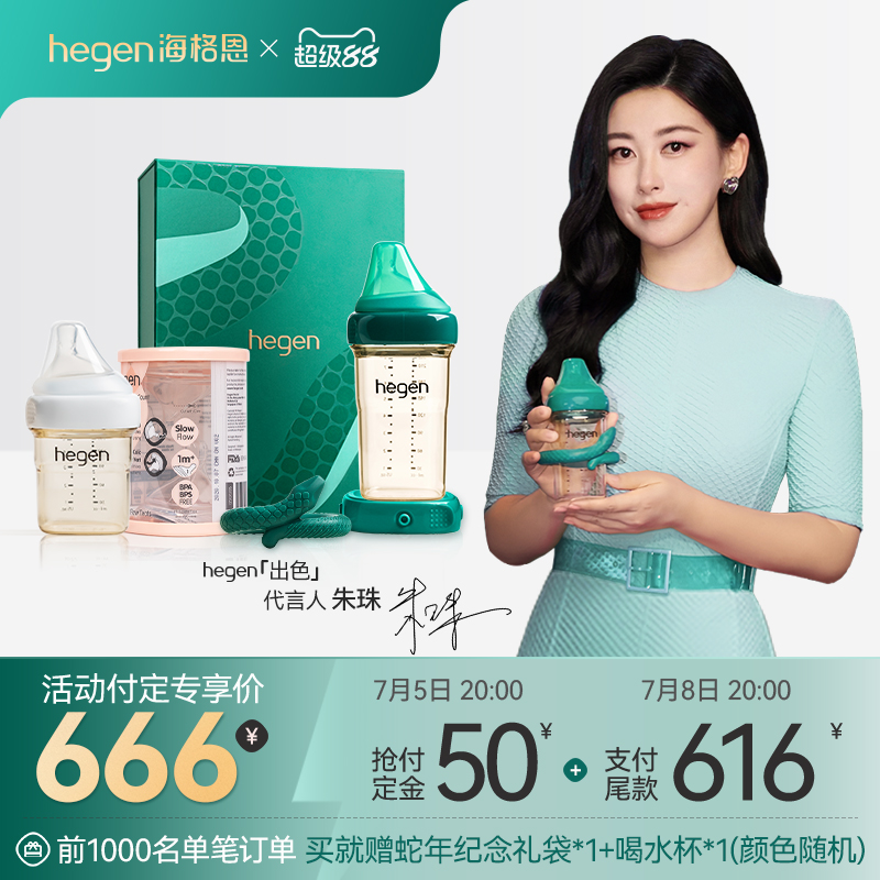 Hegen海格恩蛇年奶瓶紀念禮盒寬口徑防嗆寶寶防脹氣硅膠奶嘴配件