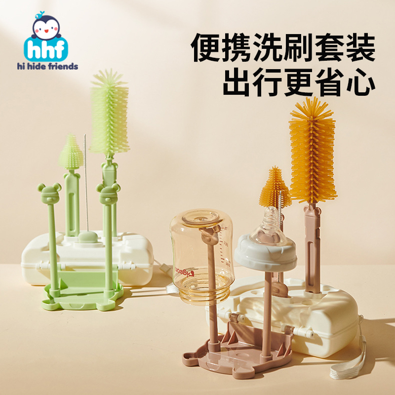 便攜式奶瓶刷套裝新生兒清洗清潔刷子寶寶專用三合一晾干架外出裝