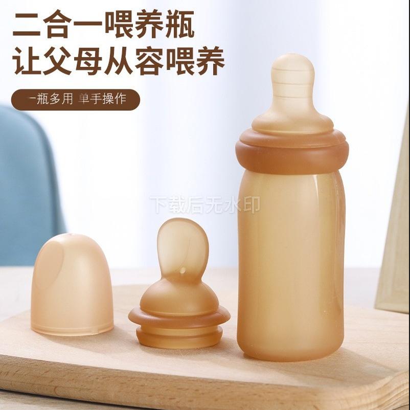 寶寶米糊勺奶嘴喂藥兩用硅膠瓶擠壓式喂養新生嬰幼兒輔食工具90ml