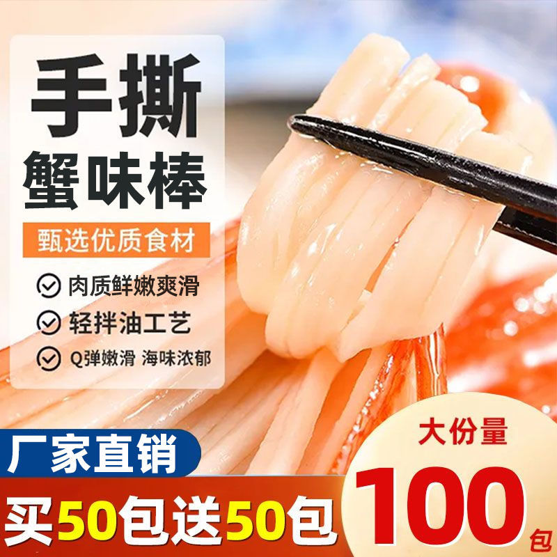 新貨【超值100包】手撕蟹味棒即食香辣零食風味小吃休閑網紅蟹柳