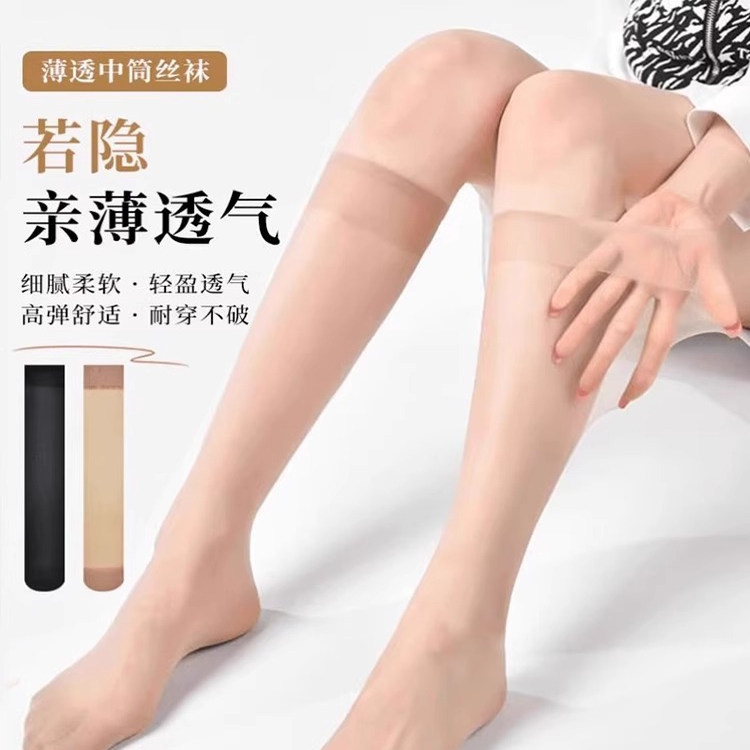 【水晶美腿襪】夏季女小腿襪 長筒薄款防滑襪 中筒防勾絲無痕襪