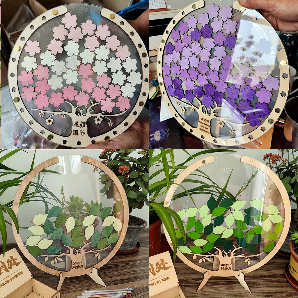 《星空月夜》企業活動開業簽到板商務年會木片簽名相框許愿瓶定制