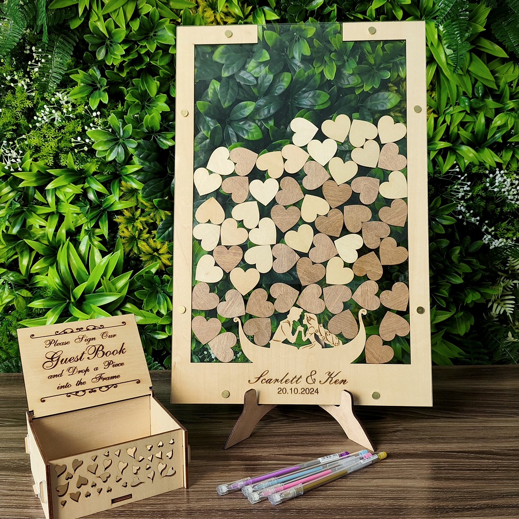 木簽名板冊簽到樹臺本結婚禮慶生日年會指紋相框道具愛心木片城堡