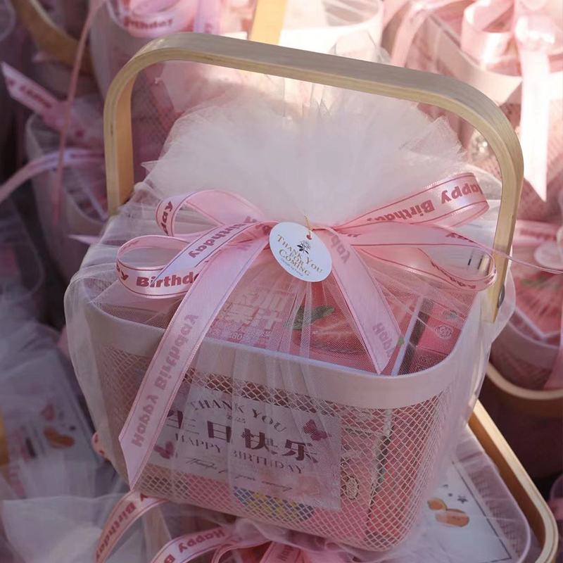 結婚伴手禮籃寶寶滿月宴成人禮手提籃生日周歲回禮提手籃網紗空盒