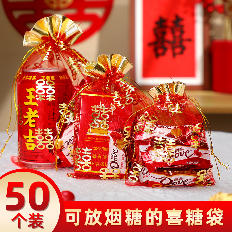 喜糖袋袋子專用結婚盒喜盒子糖束口禮盒裝禮品糖果瓜子糖婚禮紗袋
