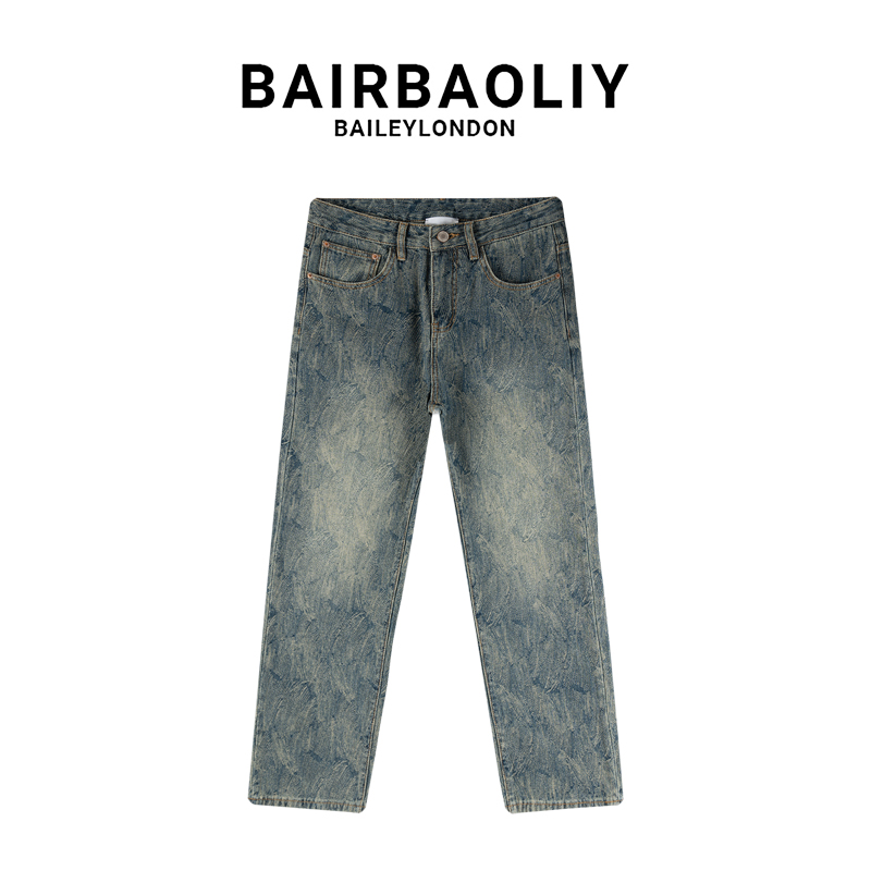 BAIRBAOLIY美式休閑高端牛仔褲男2025年春夏做舊高街潮流復古長褲