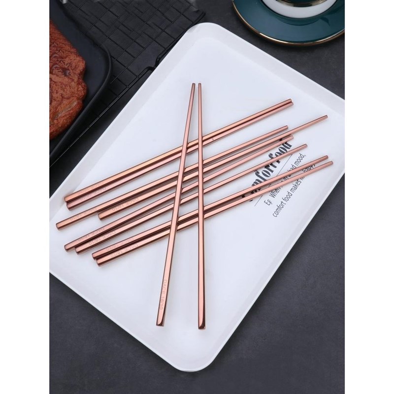 金色筷子c不銹鋼筷子304家用防滑筷10雙筷子套裝防霉防滑酒店筷子